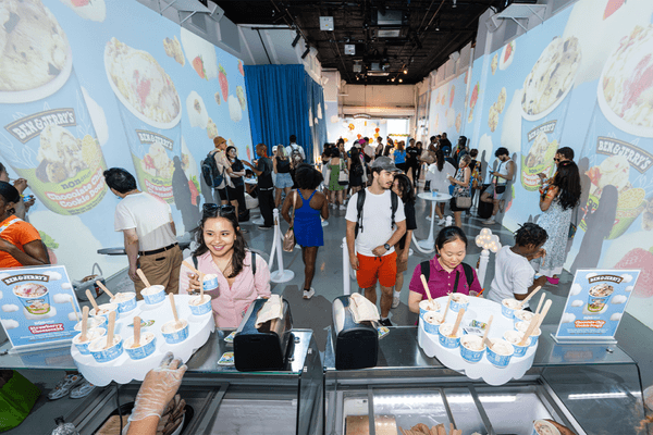 T(H headed to New York City for an exciting launch event at LUME Studios, followed by stops at scoop shops in six additional cities. At each stop, guests walked through a giant custom-fabricated pint door, into an immersive space filled with creamy, dreamy-inspired wall projections, decor, and a larger-than-life photo op. Media and influencers turned in special T(H-designed “golden” tickets for exclusive screen-printed posters, while additional tickets were hidden around the activation for guests to find. T(H handled all tour logistics, asset design, fabrication, staffing, and event layout and flow.