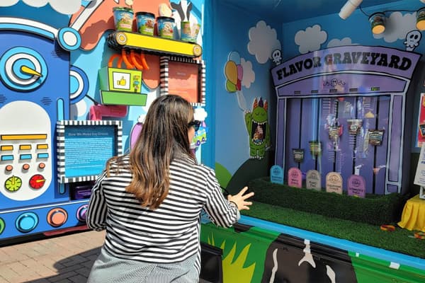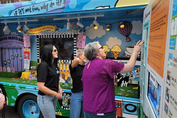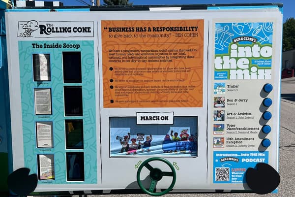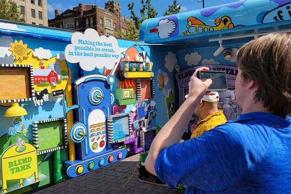T(H scoured the market for the perfect vehicle that could help tell the Ben & Jerry’s story in a vibrant way. A carefully chosen mini school bus was transformed into a retail roadshow that highlighted the history of the brand through visuals, sound, and play. Partnering with Ben & Jerry’s employees, T(H helped hand-paint the exterior of the bus with bright, eye-catching designs that celebrated the iconic Ben & Jerry’s aesthetic as well as the company’s mission. Beloved brand milestones like the Flavor Graveyard, snippets of the “Into the Mix” podcast, and images of the first scoop shop were a few of the many features built into the experience.