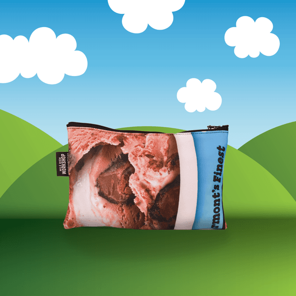 Mile High Workshop produced 600 zipper pouches, 350 small totes, and 50 duffle bags out of recycled event materials and will continue to partner with Ben & Jerry’s to ensure all their branded materials find a new life in another form, rather than contribute to waste and pollution.
