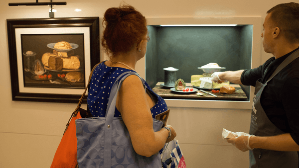 Castello celebrated the art of cheese with a two-day pop-up gallery experience in Vanderbilt Hall. The gallery featured six classic works of art framed and hung next to real-life replications of the masterpieces using premium Castello Cheese in shadow boxes. Our gallery environment was designed to be agile, allowing it to fit through an 8’ doorway and quickly be assembled with high-end gallery features such as clean white walls, soft lighting, and beautifully framed art. Experienced caterers with food handling licenses distributed cheese samples to all passersby who flooded the terminal.