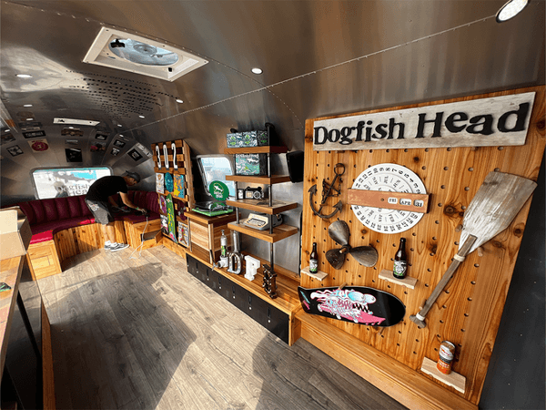 Trigger(House had to completely gut the airstream down the the frame and start from scratch. The T(H team worked closely with Dogfish Head to build something that fully encapsulated what the brand is all about by embracing the same DIY feel and sense of aesthetics that help make their home base so welcoming. T(H used remnants from the original brewery along with inspiration of items from the now-closed Miami brewery. By bringing a piece of the brewery around the country, people were given their first chance to try an array of Dogfish Head beer and canned cocktails in the most authentic setting possible.