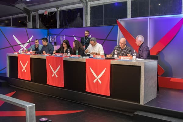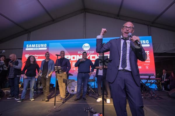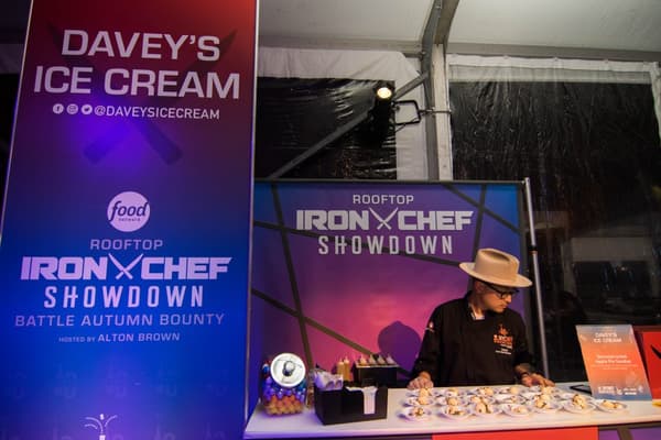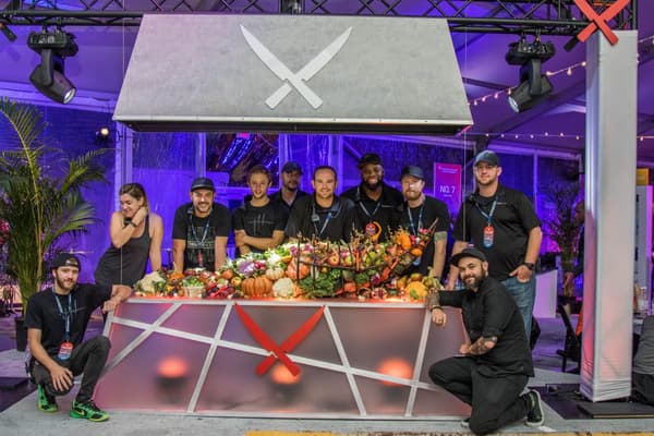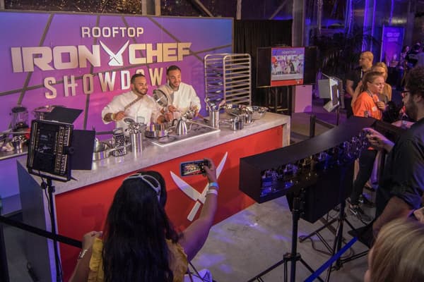Trigger(House fabricated multiple touch points throughout the footprint that incorporated Iron Chef Showdown iconic assets and design themes. A true extension of the show’s set design, these visually stunning and engaging experiences, spanning the 30,000 square foot pier, included a striking grand entrance, a chic judge's lounge, a larger than life ‘Autumn’s Bounty’ cornucopia display with automatic hood lift, a red carpet style celebrity chef meet-and-greet, more than 30 chef stations with live tasting demos, and a commercial kitchen replica complete with playful props for a photo booth set.