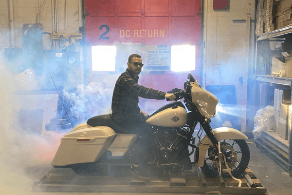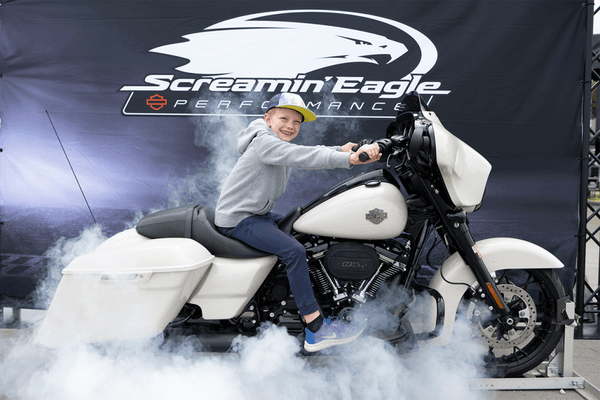 In 2022, H-D® and T(H collaborated on a photo op that centered around a fun nod to racing and moto culture: an iconic touring bike that with a twist of the throttle triggered a smoke machine and sound design sequence to mimic a burnout—the ever-badass stunt in which a stationary bike’s wheels spin and heat up, creating a big, beautiful all-encompassing cloud of smoke in its wake. In 2024, H-D asked T(H to update the motorcycle to a new Road Glide® CVO® and create another photo op for NASCAR races.