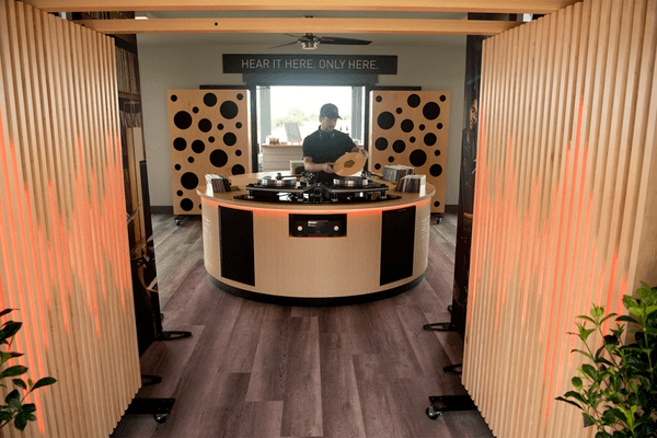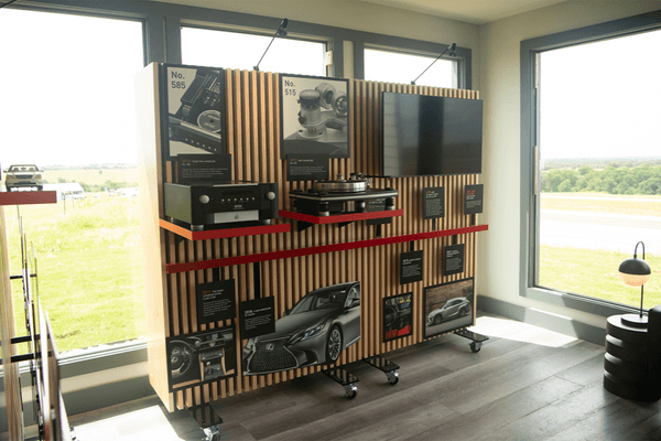 Trigger(House designed all assets to be modular, easy to transport, and scalable for different size constraints and floor plans. To achieve this while staying true to Mark Levinson and Lexus brand identities, T(H curated an authentic vinyl lounge with adjustable displays that tie in brand partnership history, product highlights, and record-inspired decor. Enhancing the experience was a custom-designed circular DJ booth curating crowd-pleasing music for guests to enjoy while exploring the space or relaxing in a comfy seated parlor.
