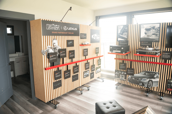 Design and build a high-end “plug and play” experiential toolkit for seamless integration at a number of events nationwide that leverages the new look and feel of the Mark Levinson brand. Generate awareness and consideration for Mark Levinson sound systems in Lexus vehicles and tell the rebranded Mark Levinson story, tracing a remarkable path of innovation from the origin of the company to where they are today—and the bright future of their exciting partnership with Lexus.
