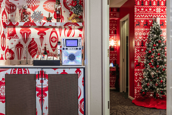 The Trigger(House “elves” designed and built out an immersive winter wonderland at the Fairmont Chicago in just a few weeks. The experience honored the Hotels.com brand, captured the holiday spirit, and included some especially festive surprises, including DJ Santa, a karaoke machine, and an LED dance floor. The 24-hour music was controlled remotely by the T(H production team and was monitored from the suite next door to ensure the contest winner made it through the entire not-so-calm, not-so-quiet challenge.