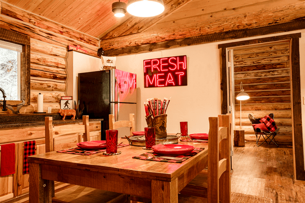 Three pairs of winners were chosen through a sweepstakes for a four-day stay at The Bar W Guest Ranch in Whitefish, MT. There, each pair of guests was consumed by a meat-centric room complete with meat lamps, meat-printed sheets, and a hot tub Marination Station. Every detail in the room was designed and curated to ensure the lucky guests could really (m)eat their hearts out.