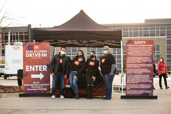 Sometimes you have to look back to move forward, so we took a page out of the history books and turned Drive-In movie night into a Drive-In concert. From invitation to activation, T(H developed touchless experiences that delivered a much-needed night out in the Covid era. Guests were first invited to register on a custom event website complete with show information and safety regulations, after which they received a confirmation email and ticket for their vehicle. Upon arrival, each vehicle received gift bags complete with JBL portable speakers for up to five passengers before they were invited to enjoy a green screen photo experience for social media sharing on their way to their designated viewing location. Spaced vehicle parking and adjacent outdoor areas for each car’s group allowed for safely distanced viewing, while our online event page also allowed for guests to order food to be delivered carside throughout the show.