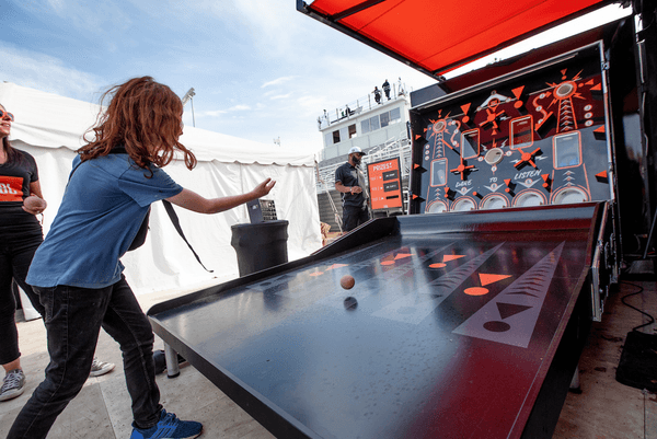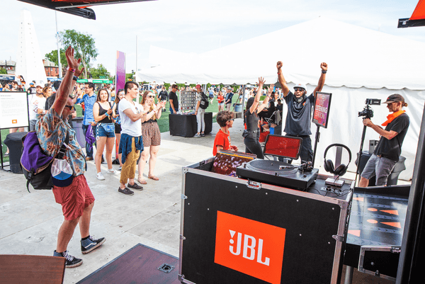 Trigger(House identified music festivals and sporting events relevant to the JBL brand to activate the JBL Dare To Listen tour experience across the continental United States. To drive on-site participation and product demos, the tour experience included multiple touch points, including a baseball-themed dunk tank highlighting JBL waterproof products, heat press for customized branded giveaways, headphone and speaker engraver, themed Boomerang video op, and charging lounge. All event elements were housed in a 20’ branded shipping container for mobility and efficient set-up/breakdown.