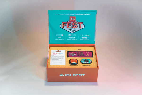 Design and fabricate seeding kits to amp up influencers and talent for JBL FEST 2022, a three-day brand festival with unique events at the intersection of music, sports, and gaming.