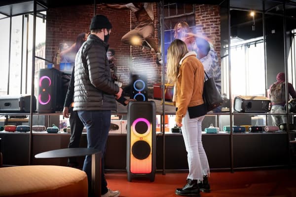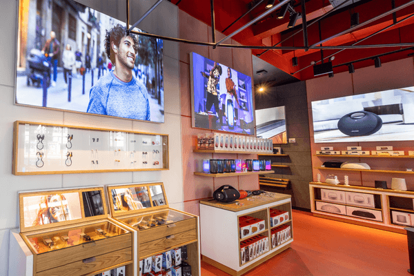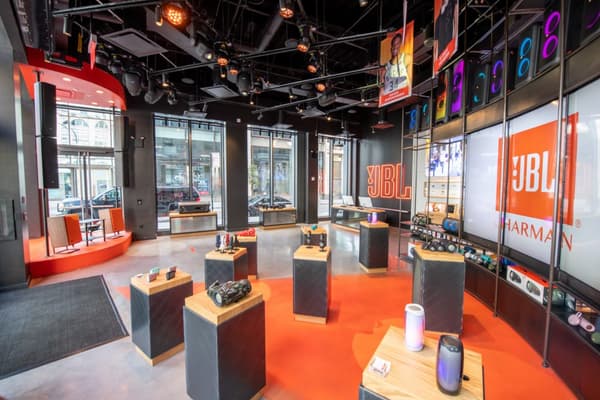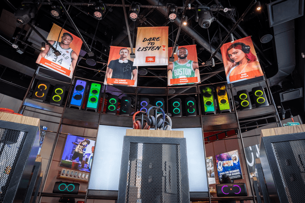 T(H designed and installed all professional audio and lighting solutions in the new JBL flagship store, integrating top-tier systems to enhance the visitor experience. We sourced and facilitated the installation of tech throughout the space—including building out an engaging gaming center, managing video content, and more. We also printed and installed branded graphics and signage throughout the footprint. And, for additional accessibility and ease of use, light and video content was rigged to be controlled remotely.