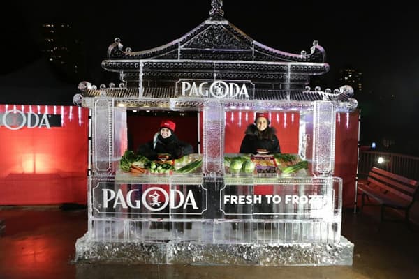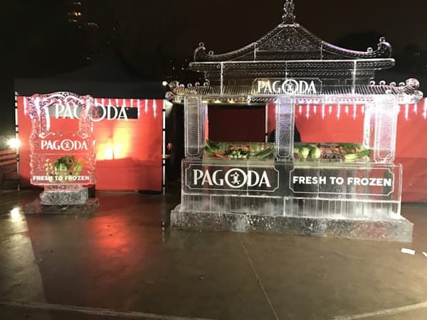 Trigger(House designed a stunning interactive “Fresh to Frozen Wonderland” that included an impressive 11’ tall frozen Pagoda farm stand-inspired sampling station and a carved ice photo op, complete with fresh vegetable ingredients frozen inside. The impressive sampling experience debuted at Lincoln Park Zoo’s annual ZooLights festival, where a team of chefs served up hot Pagoda egg rolls to guests on a chilly December evening.