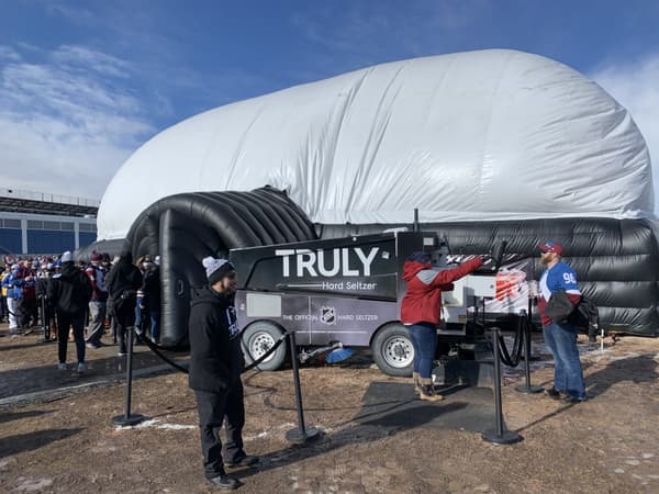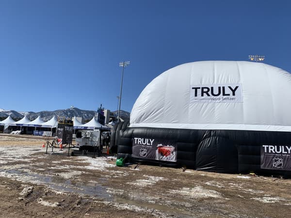 This NHL Stadium Series TRULY Hard Seltzer Pregame was the third event to experience the full TRULY Bubble Hockey Lounge activation. The hockey rink-inspired lounge delivered again with incredibly immersive projections, TRULY branded bubble hockey games, a custom TRULY ice luge for sampling, a photo op, giveaways, and, of course, plenty of ice-cold cans of TRULY for sale at the bar. The activation also featured a TRULY branded zamboni photo op on the exterior. T(H was tasked with managing the logistics and execution of the activation, including planning, staffing, and onsite management.