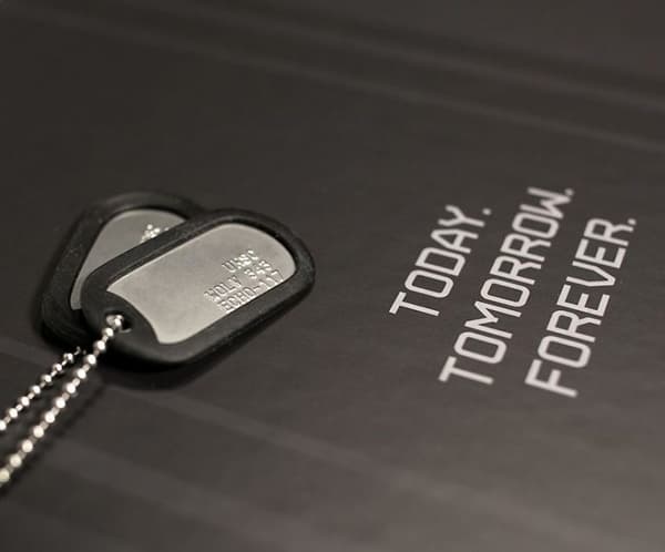 Trigger(House designed a high-end magnetic closure box with limited edition custom-stamped dog tags and foam cutouts for 4 sizes of boots. Adding to the rugged presentation were poly strapping and metal buckles on the exterior of the packaging, evoking a tough, industrial aesthetic, tying everything back to the overarching militaristic theme. T(H handled the logistics and all vendor management as it related to the production of the boxes and accessory elements.