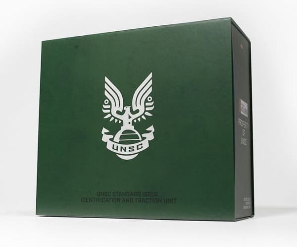 Create unique custom packaging for the Wolverine x Halo Limited Edition Master Chief boot. The design should be inspired by the Halo video game, creating an unboxing experience as exciting and memorable as the boots themselves and providing a sharable moment for consumers to celebrate across social media.